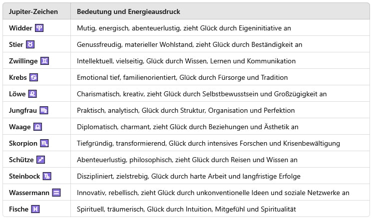 Die Position von Jupiter im Tierkreiszeichen zeigt, wie eine Person Wachstum erfährt, welche Art von Glück sie anzieht und wie sie sich weltanschaulich entwickelt.